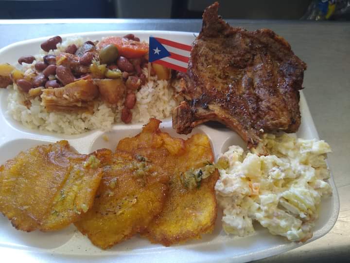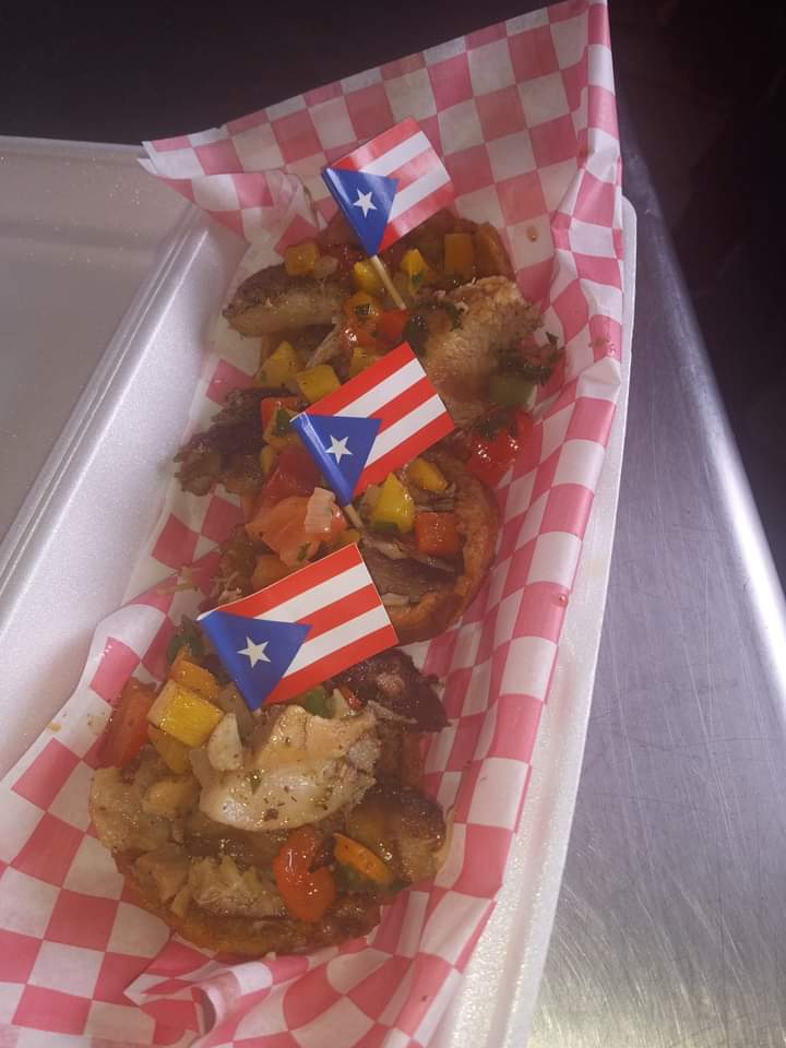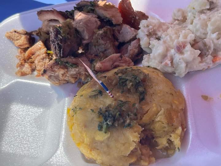 - FRIED PLANTAINS SMASHED ON A WOODEN MORTER WITH BUTTER, GARLIC DRESSING,PORK RINDS AND PORK SEASONING